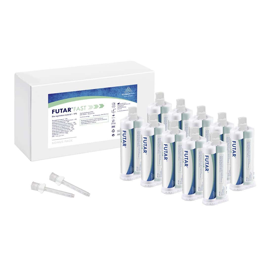 Futar® Fast is used, among other applications, for fast and reliable bite registration. Futar® Fast “green” is less hard than Futar® D Fast “red” and, thanks to its low modulus of elasticity, is very suitable for an occlusal end-to-end bite.