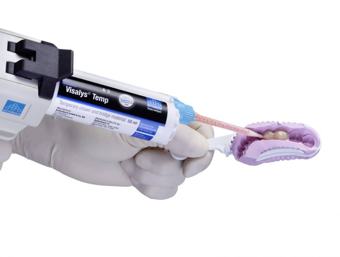 Visalys® Temp from Kettenbach Dental is a reliable and aesthetic restorative material. It is exceptionally stable and user-friendly, making it ideal for the fabrication of temporary crowns and bridges (as well as provisional inlays, onlays, and veneers). More stable than all existing materials, it carries a lower risk of fracture and is also suitable for long-term temporary restorations. For the impression mould, it is best to use a putty or an alginate-replacing A-silicone impression material (Silginat®). This makes finishing less time-consuming and the final result more aesthetic.