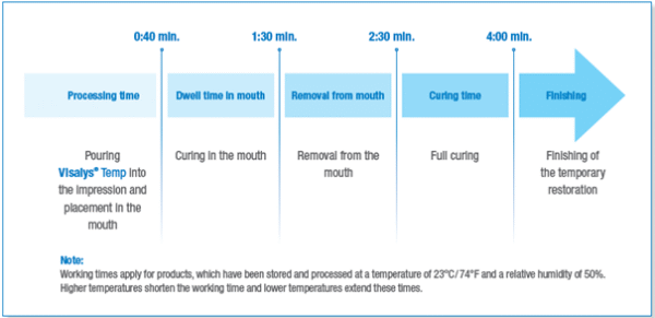 The ideal time for removal depends on the personal preference of the user: Some users prefer it when the temporary is still relatively elastic – others want the temporary restoration to be very hard when it is removed from the mouth. On the other hand, the individual oral situation must also be taken into account: If, for example, there are large undercuts, it is better to remove the temporary restoration at an early stage.